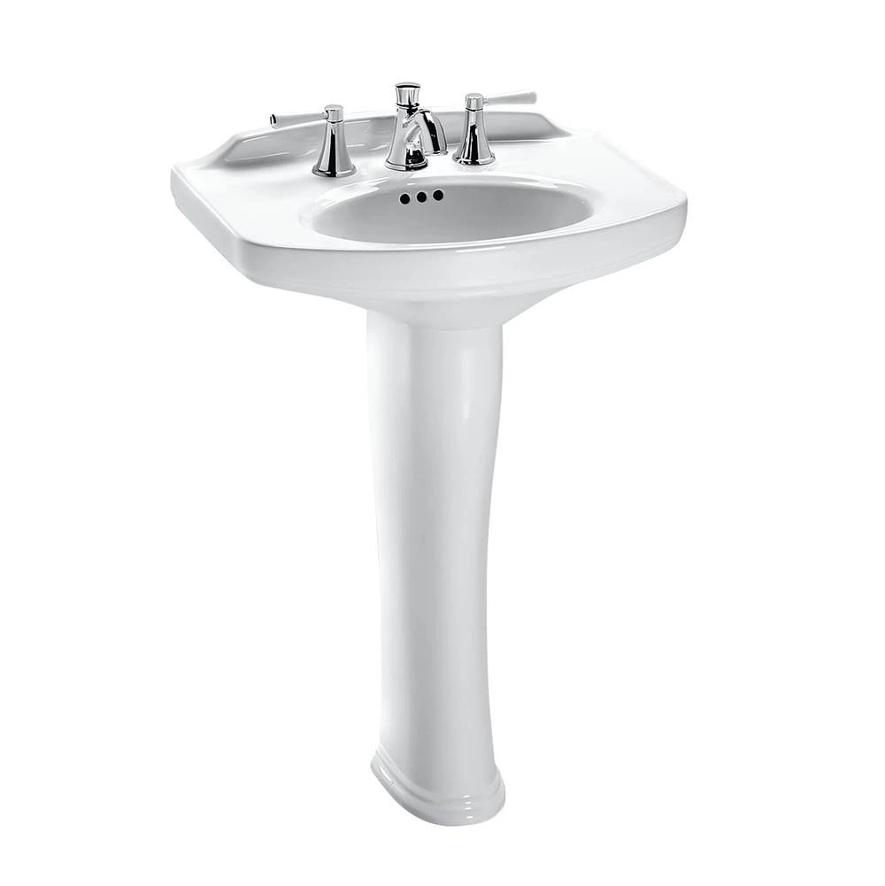 The TOTO® Dartmouth® Rectangular Pedestal Bathroom Sink with Arched Front for 8 Inch Center Faucets offers a transitional design with a luxurious deep basin. The Dartmouth pedestal sink features a large backsplash and rear overflow. The Dartmouth pedestal sink is designed in TOTO”s Universal Height, offering a more comfortable experience across a wide range of users.