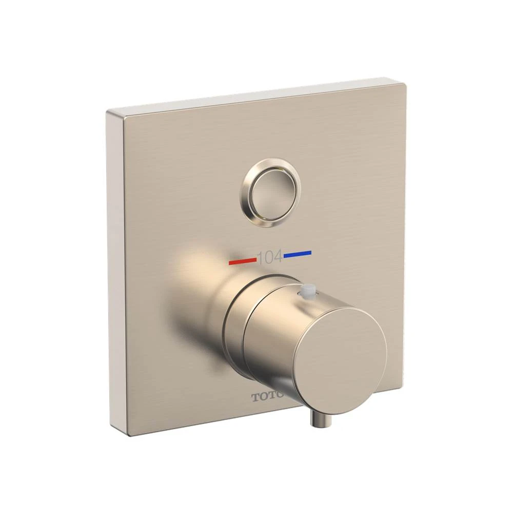At TOTO, we design simple, brilliant, and elegant solutions for basic human needs where every innovation and detail is designed with you in mind. We’re committed to improving people’s lives and for over a century, we’ve made products that do just that. Add functionally and control to your everyday routine with the TOTO Square Thermostatic Mixing Valve with One-Function Shower Trim. This contemporary styled accessory paired with the separately sold TOTO MiniUnit™ TBN01001U valve allows control over water temperature. The convenient push-button provides a simple on and off switch. The Safety Thermo thermostatic mixing valve enables quick, responsive scald prevention and includes an anti-scald stop. This long lasting and durable accent is made of solid brass construction and finished with corrosion-resistant chrome plating. The handle knob provides an unobtrusive twist assist for a clean aesthetic. The thin escutcheon offers a minimalistic look at only 10 millimeters in thickness. TOTO creates a clean, relaxed, and refreshing lifestyle by designing for every part of the bathroom and striving to bring more to every moment you spend there. Requires separately sold TOTO MiniUnit™ TBN01001U.