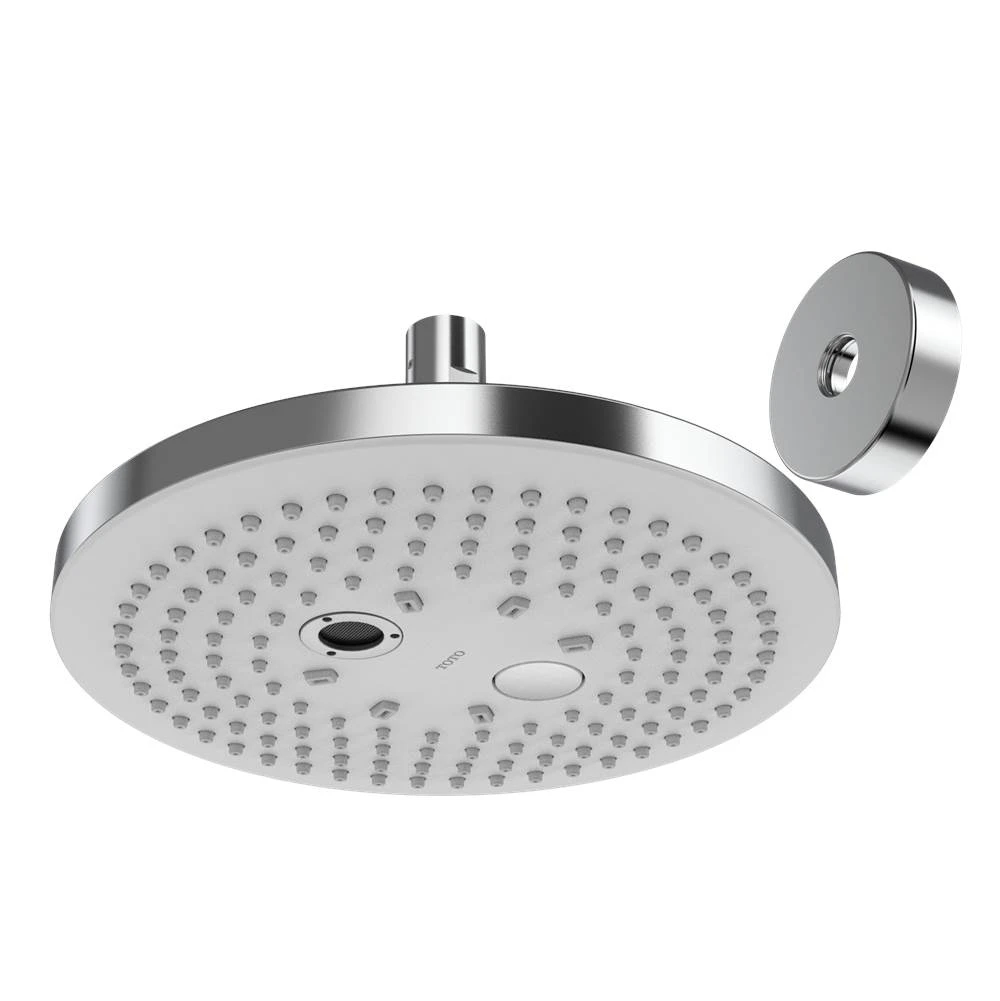 At TOTO, we design simple, brilliant, and elegant solutions for basic human needs where every innovation and detail is designed with you in mind. We’re committed to improving people’s lives and for over a century, we’ve made products that do just that. The TOTO G Series Round Two Spray Modes 8.5 inch 2.5 GPM Showerhead with Comfort Wave™ and Warm Spa™ offers a modern and sleek design that coordinates with any bathroom décor. The convenient push-button enables simplified transition between the two spray modes. Indulge yourself as the Comfort Wave technology releases oscillating water from four central locations, while the periphery of the shower head offers a standard spray-type flow. This provides you with a wide, full-feeling shower. Embrace yourself in warmth with TOTO”s Warm Spa technology. The expertly crafted pillar of water wraps your entire body in a thin veil of water, keeping you warmer through the entire shower experience. Long lasting and durable, this showerhead offers maximum flow rate of 2.5 GPM, with a generous 8.5 inch diameter spray face. The rubber nozzles help to prevent limescale buildup. TOTO creates a clean, relaxed, and refreshing lifestyle by designing for every part of the bathroom and striving to bring more to every moment you spend there. Requires the separately sold TOTO TS110MW16 or TS110MC6 rain shower arm.
