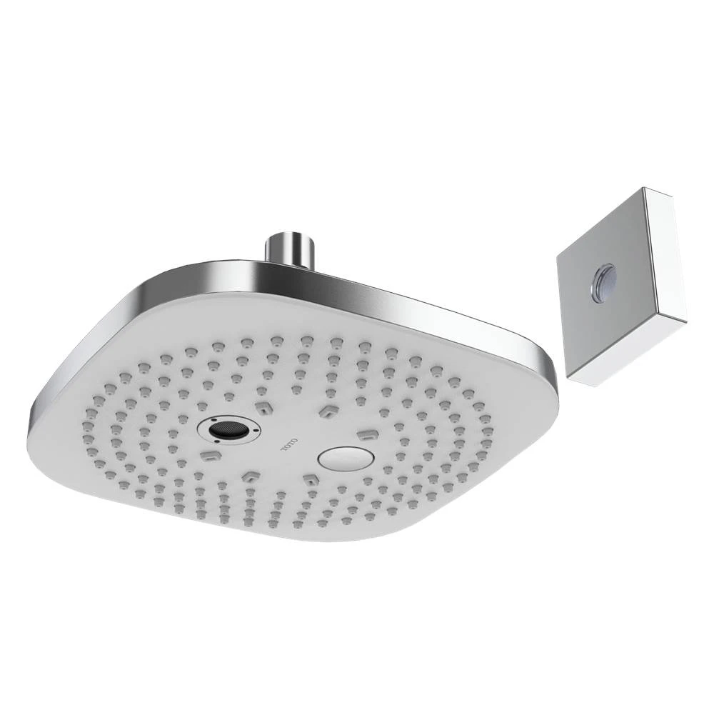 At TOTO, we design simple, brilliant, and elegant solutions for basic human needs where every innovation and detail is designed with you in mind. We’re committed to improving people’s lives and for over a century, we’ve made products that do just that. The TOTO G Series Square Two Spray Modes 8.5 inch 2.5 GPM Showerhead with Comfort Wave™ and Warm Spa™ offers a modern and sleek design that coordinates with any bathroom décor. The convenient push button enables simplified transition between the two spray modes. Indulge yourself as the Comfort Wave technology releases oscillating water from four central locations, while the periphery of the shower head offers a standard spray-type flow. This provides you with a wide, full-feeling shower. Embrace yourself in warmth with TOTO”s Warm Spa technology. The expertly crafted pillar of water wraps your entire body in a thin veil of water, keeping you warmer through the entire shower experience. Long lasting and durable, this showerhead offers maximum flow rate of 2.5 GPM, with a generous 8.5 inch diameter spray face. The rubber nozzles help to prevent limescale buildup. TOTO creates a clean, relaxed, and refreshing lifestyle by designing for every part of the bathroom and striving to bring more to every moment you spend there. Includes showerhead and matching escutcheon. Requires the separately sold TOTO TS110MW16 or TS110MC6 rain shower arm.